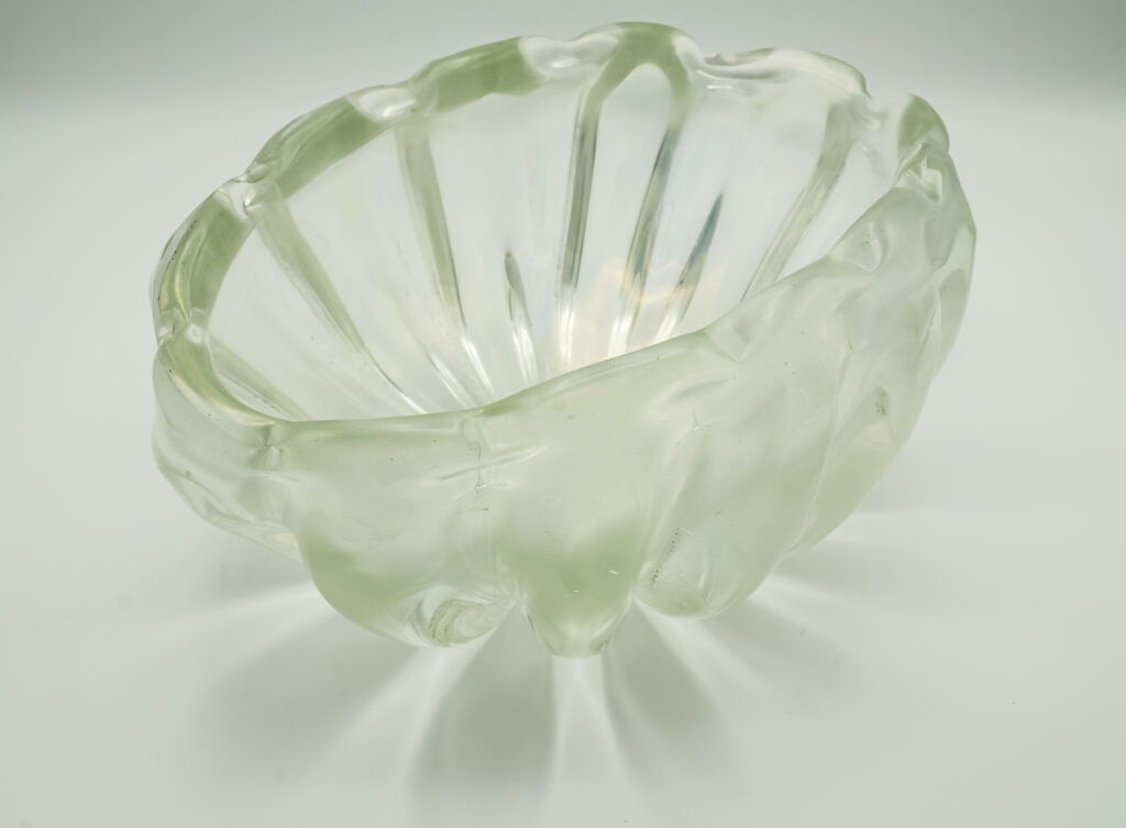 Heavy ribbed printed iridescent crystal bowl