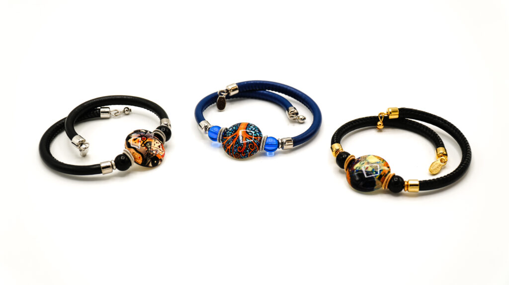 “Author” bracelets and rings worked with the same technique as the pendants, the rings have an adjustable closure and are made of hypoallergenic material.