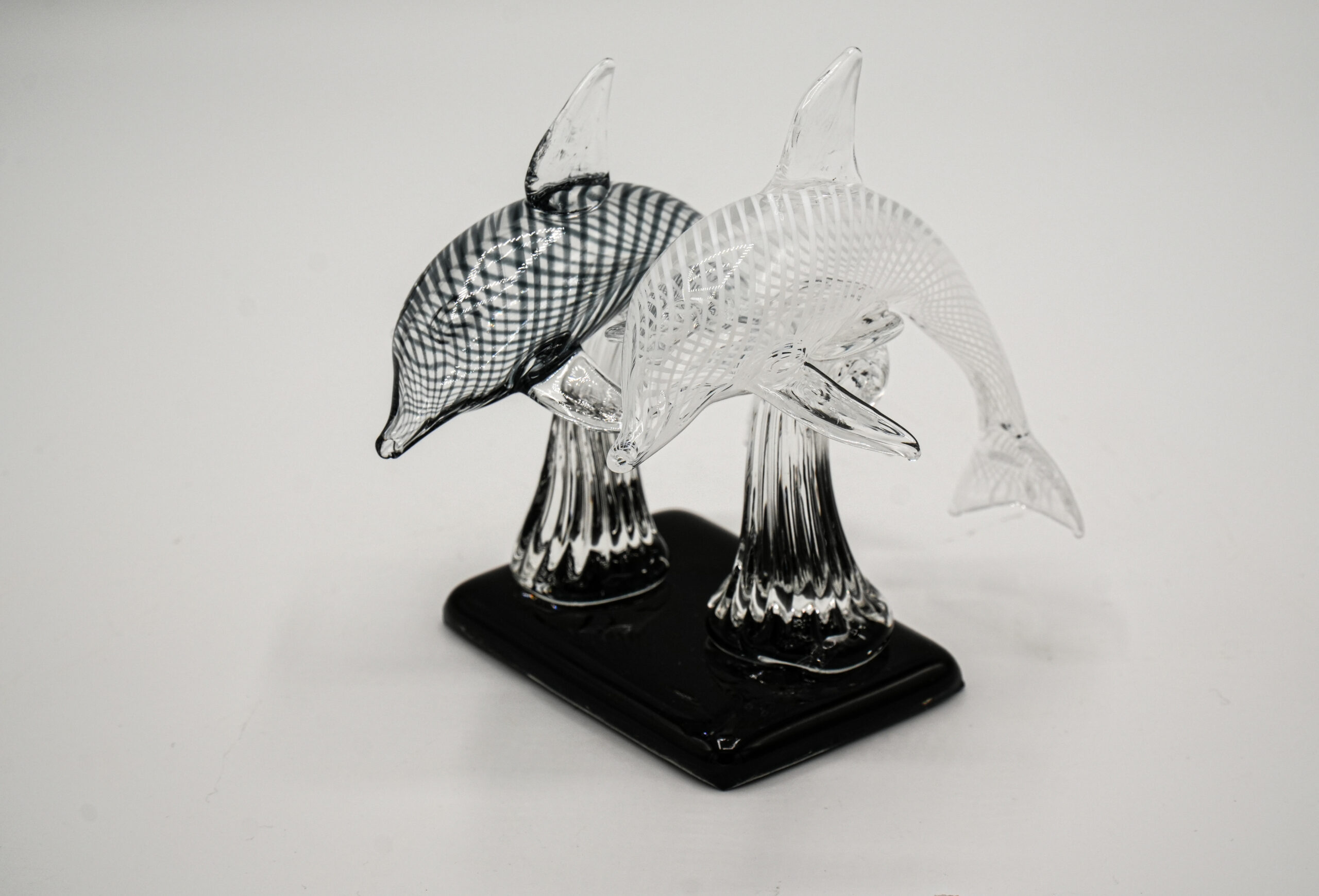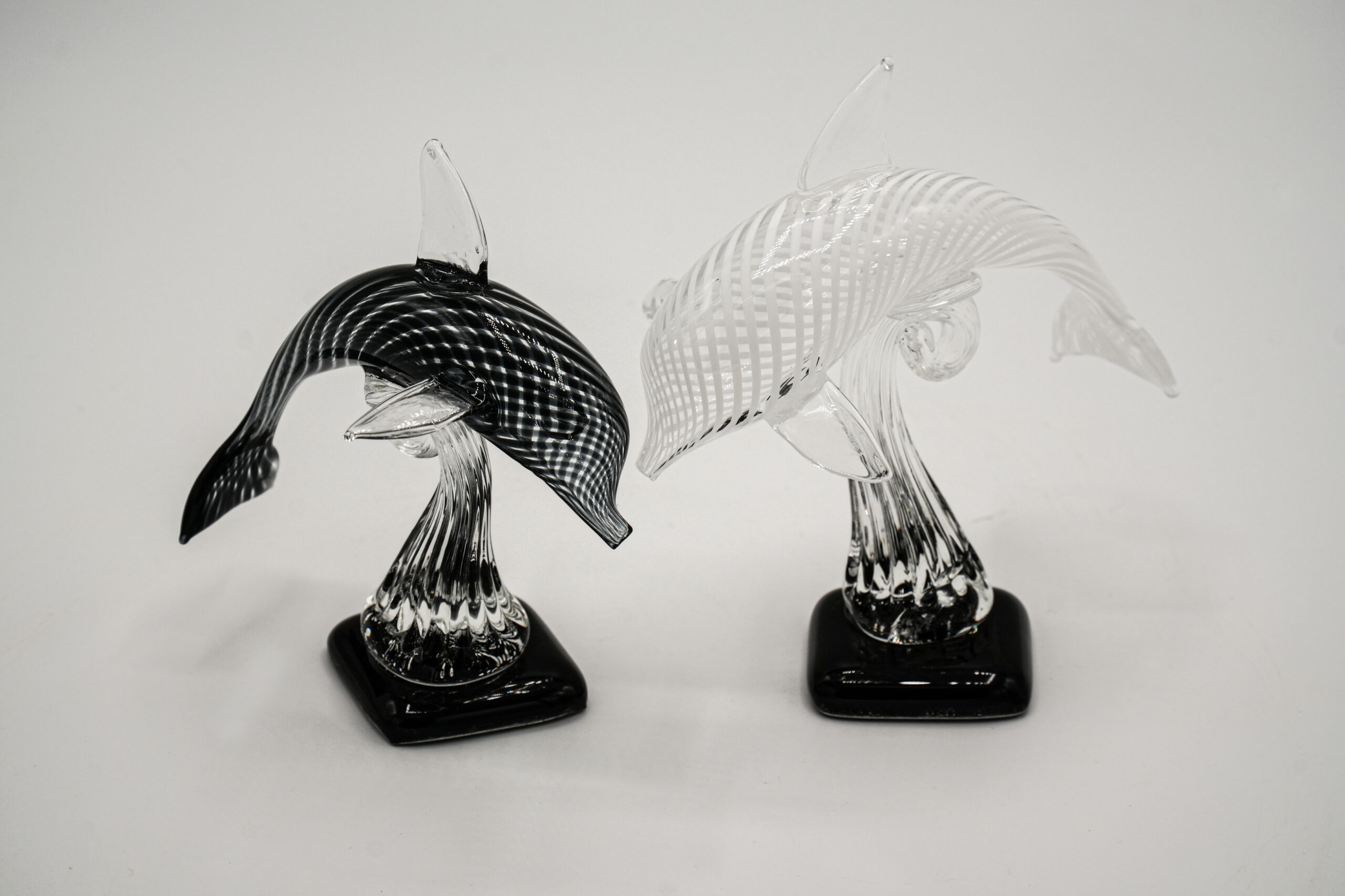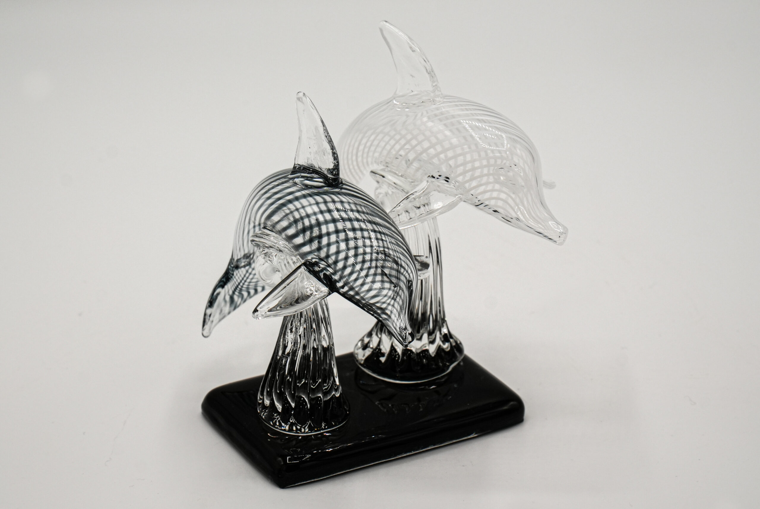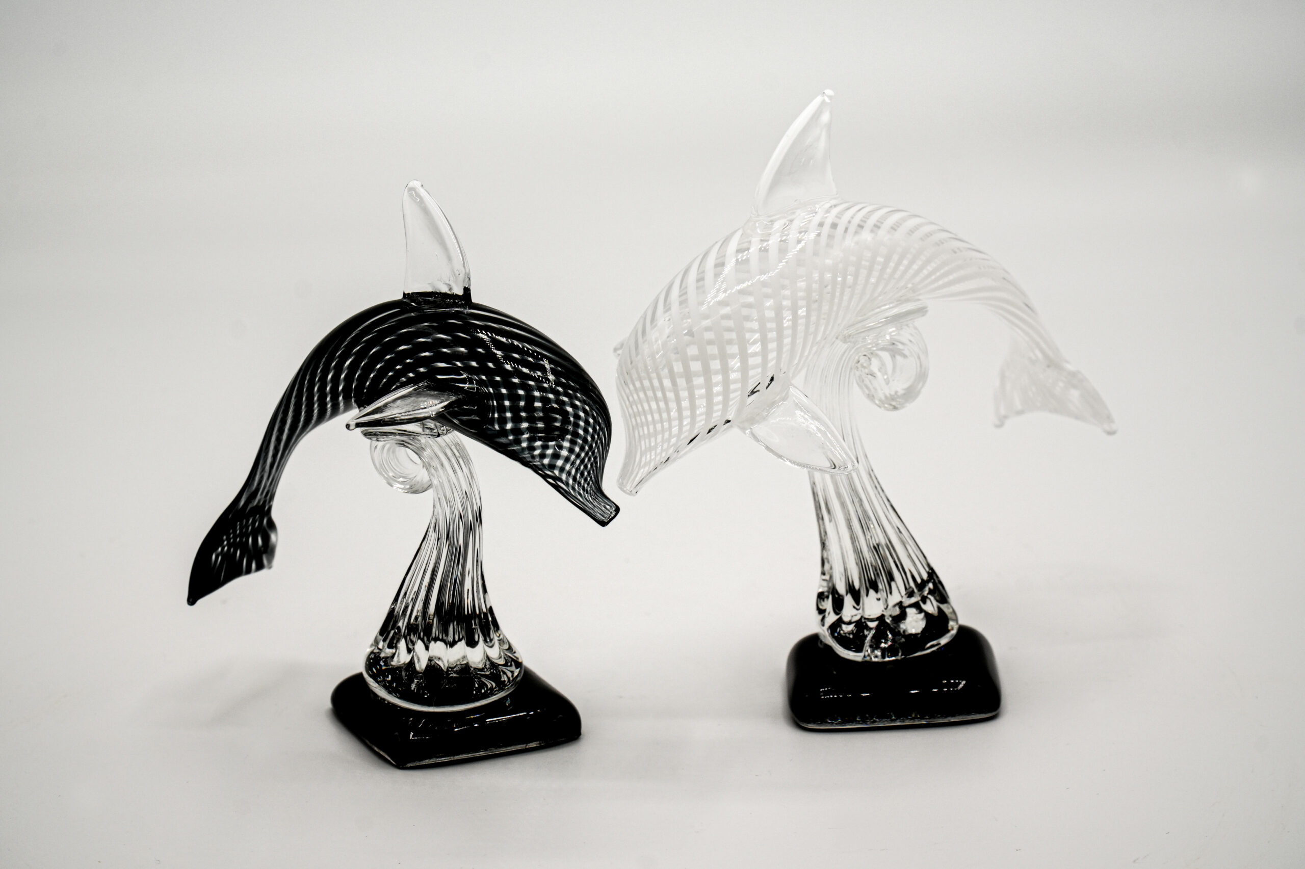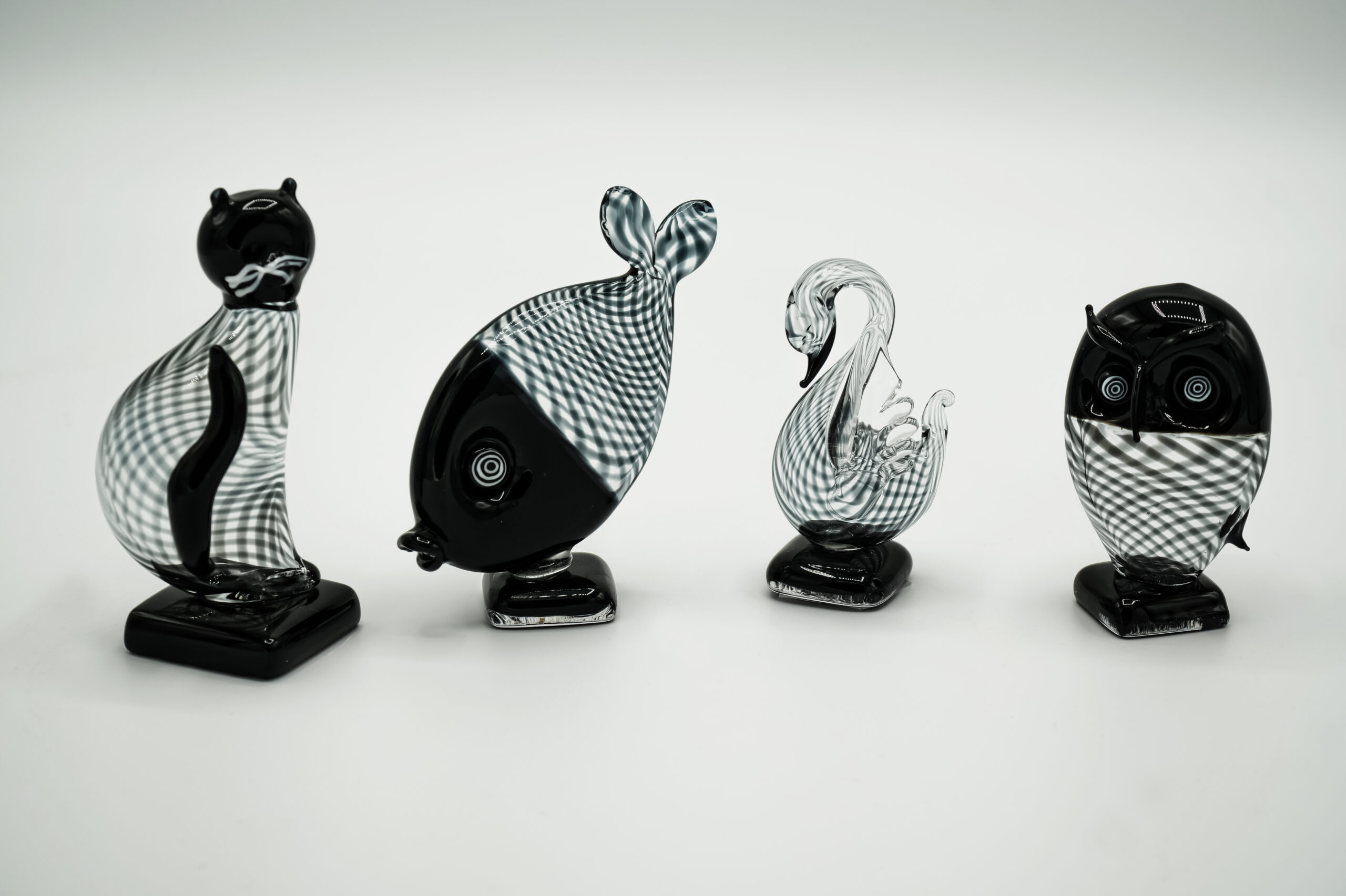 Miniatures representing animals, worked with filigree lampwork technique and color resting on a black base.