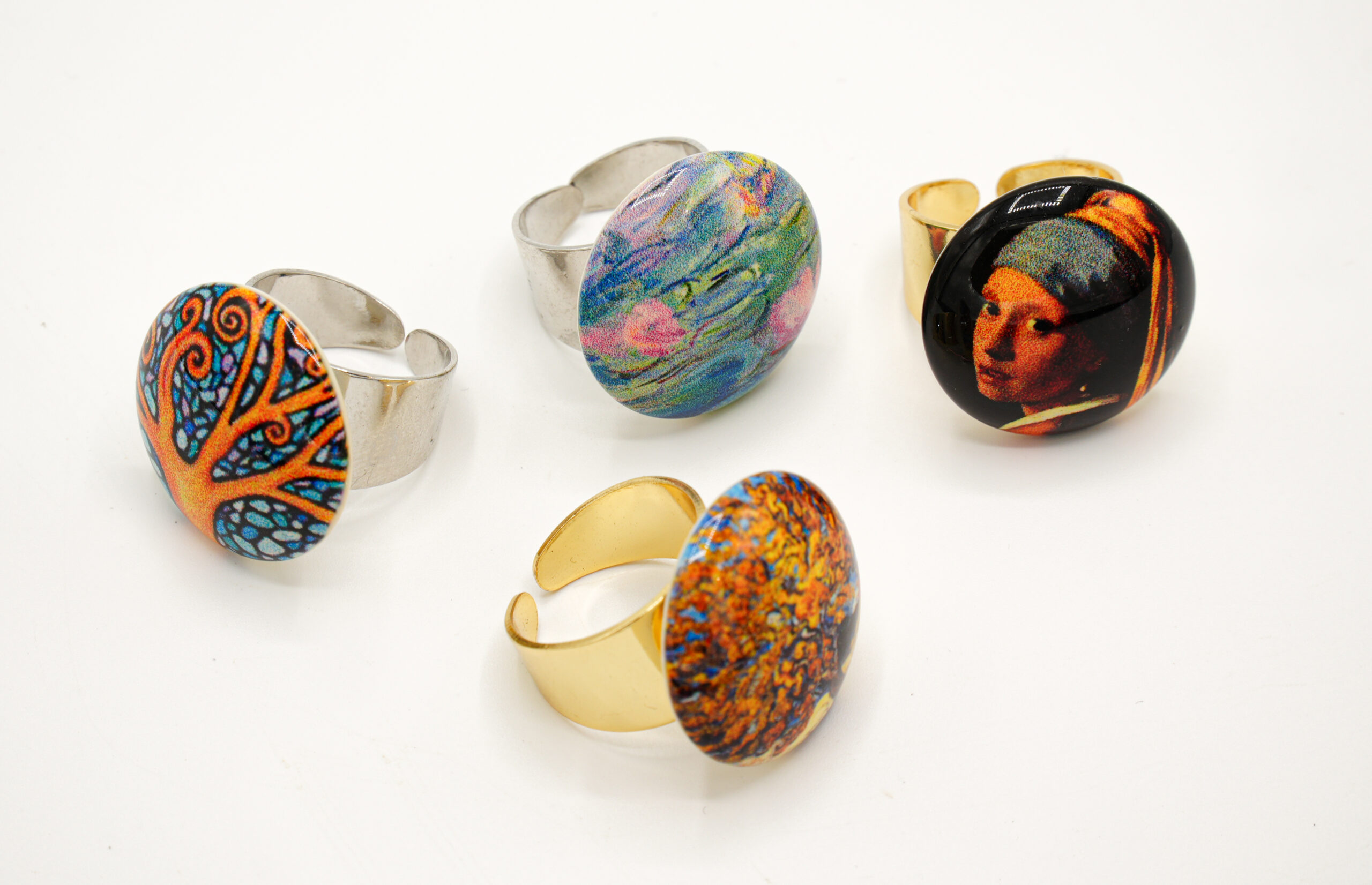 “Author” bracelets and rings worked with the same technique as the pendants, the rings have an adjustable closure and are made of hypoallergenic material.
