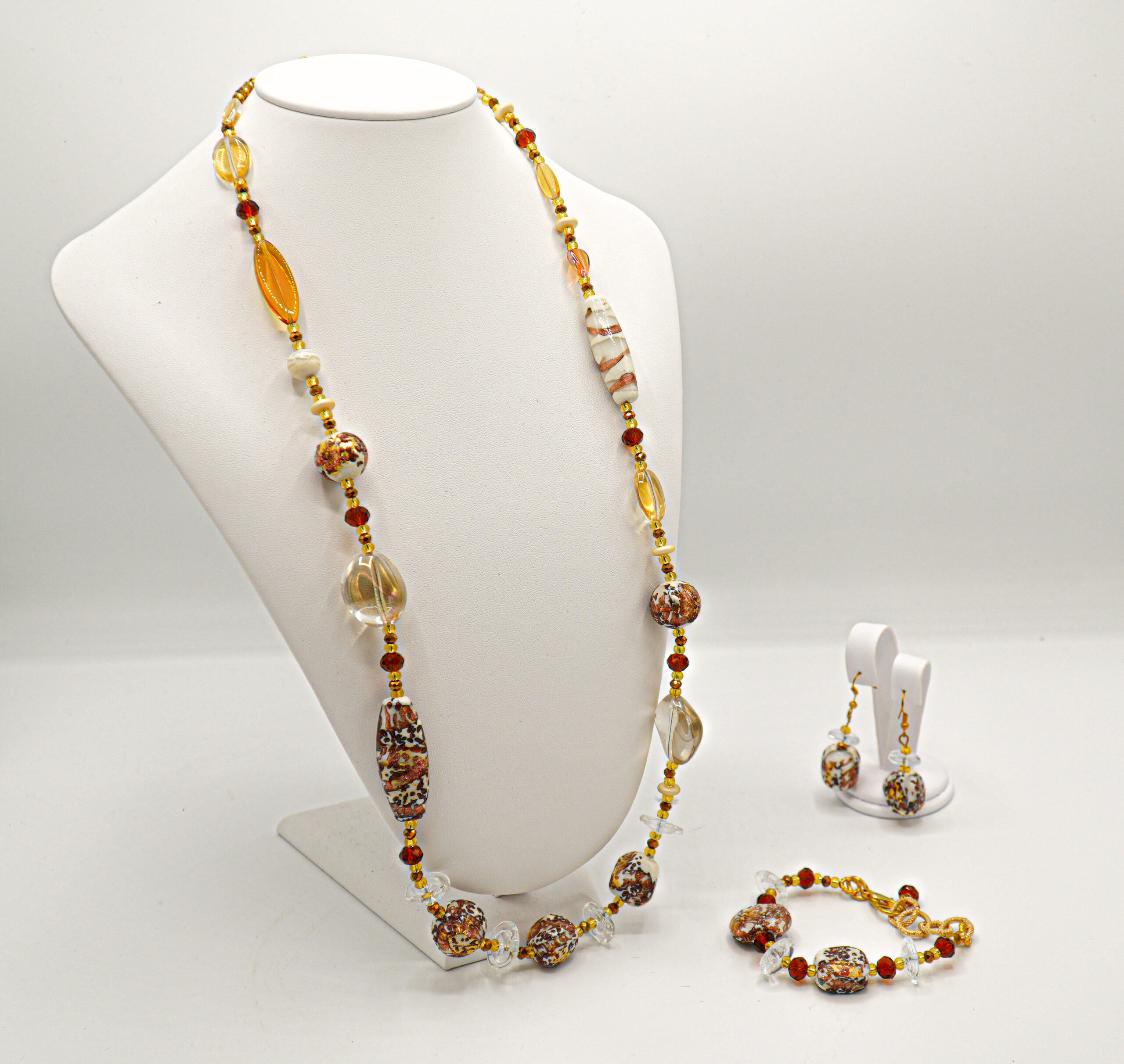 Necklace with pearls made in crystal, ivory and aventurine splinters