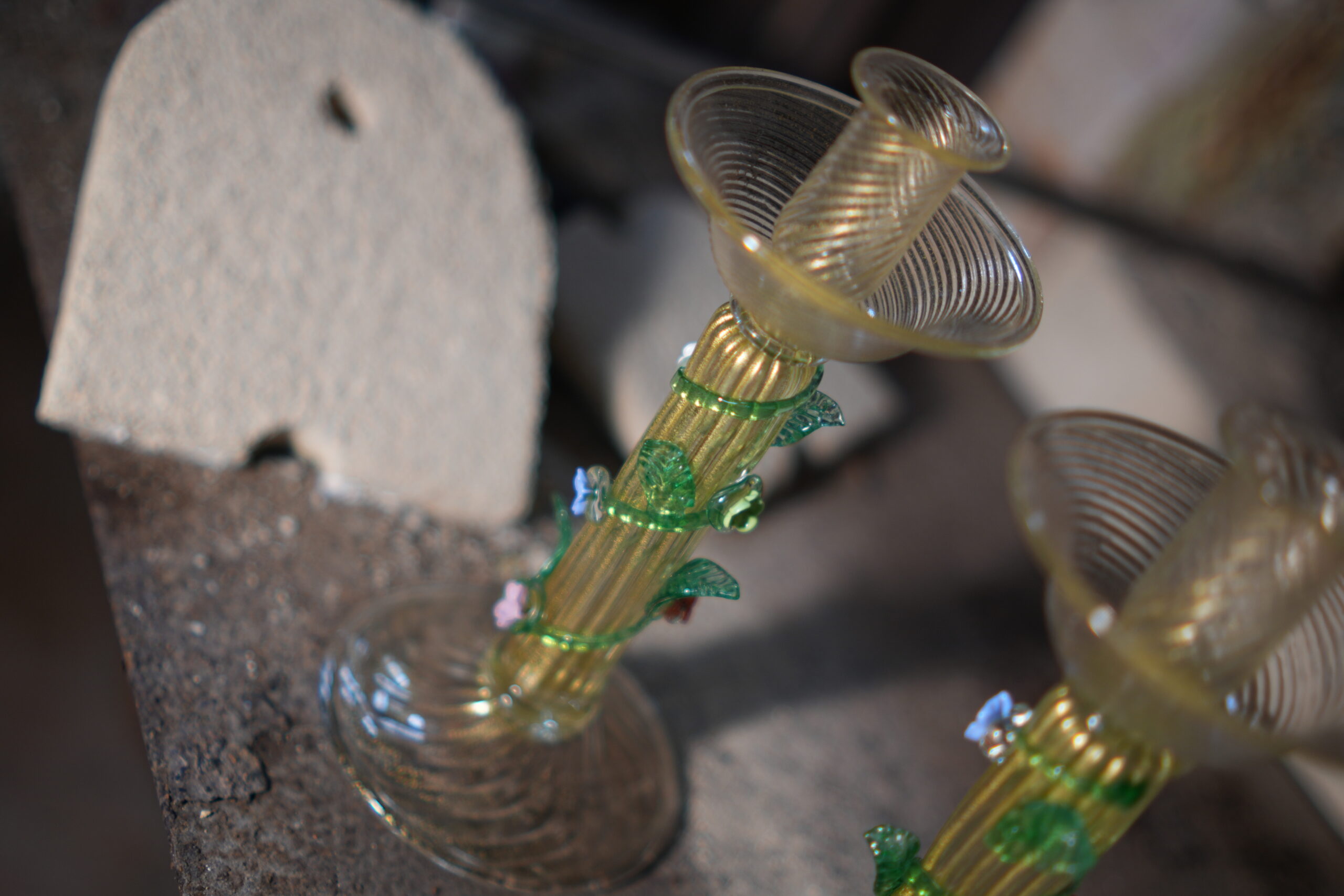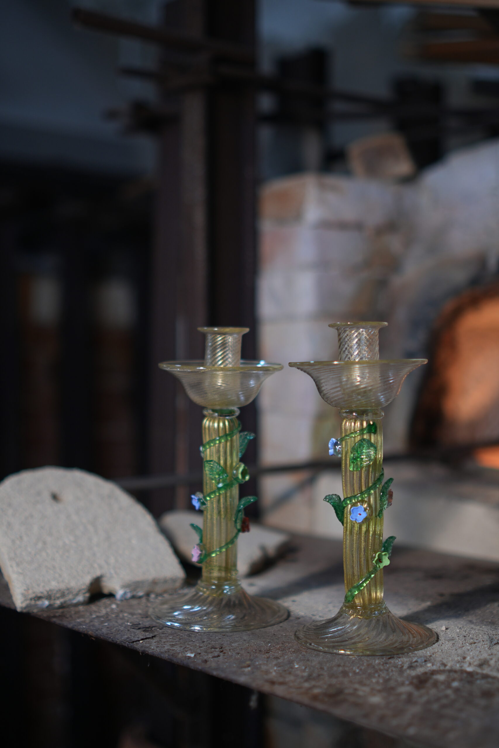 The body is solid and printed in a “straight line” shape on which flowers in different colored paste with transparent green leaves have been applied.