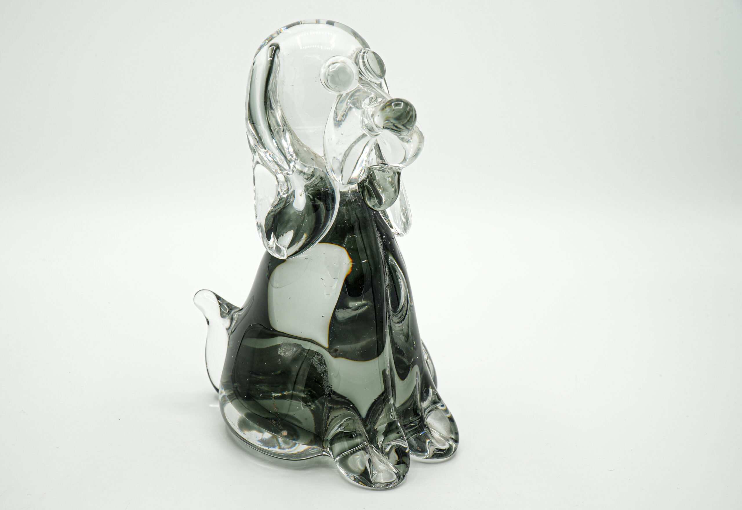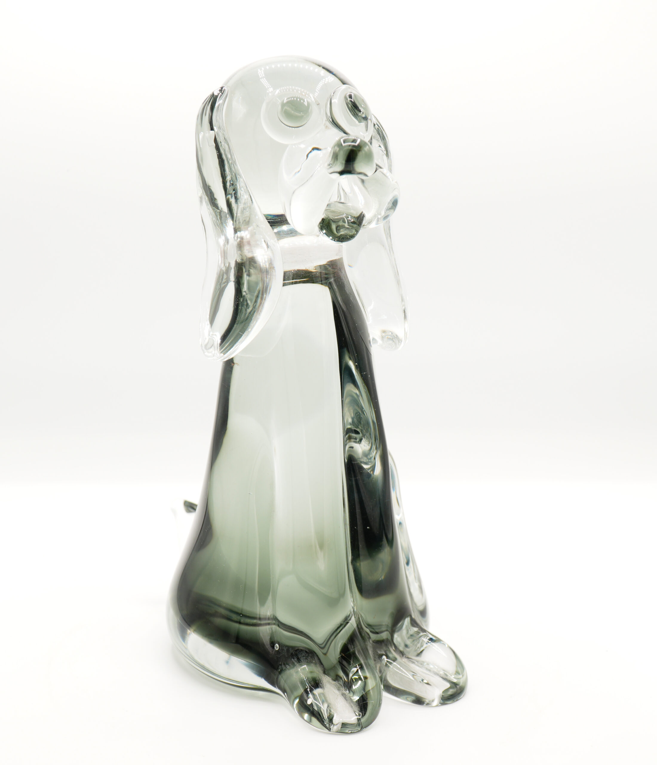 Spectacular dog-shaped sculpture made in the 1950s with impurity-free crystal glass.