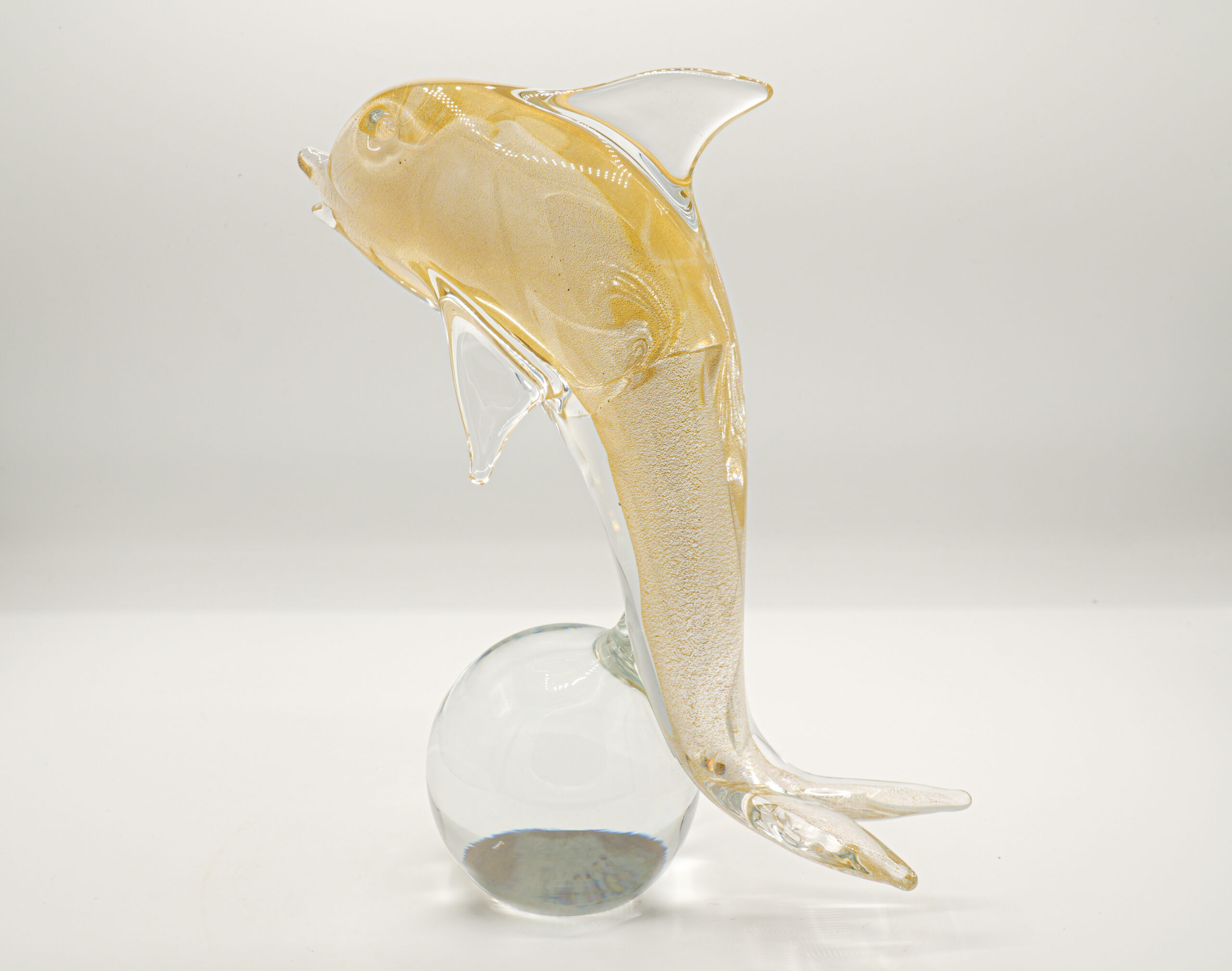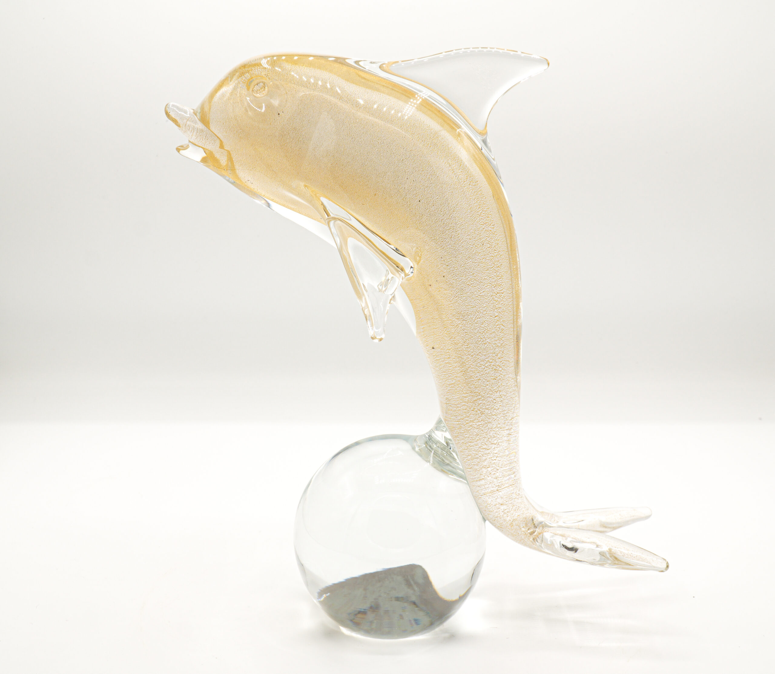 Collectible dolphin in 24 carat gold made by the Nason&C company from the 1950s resting on a crystal ball. Unique piece