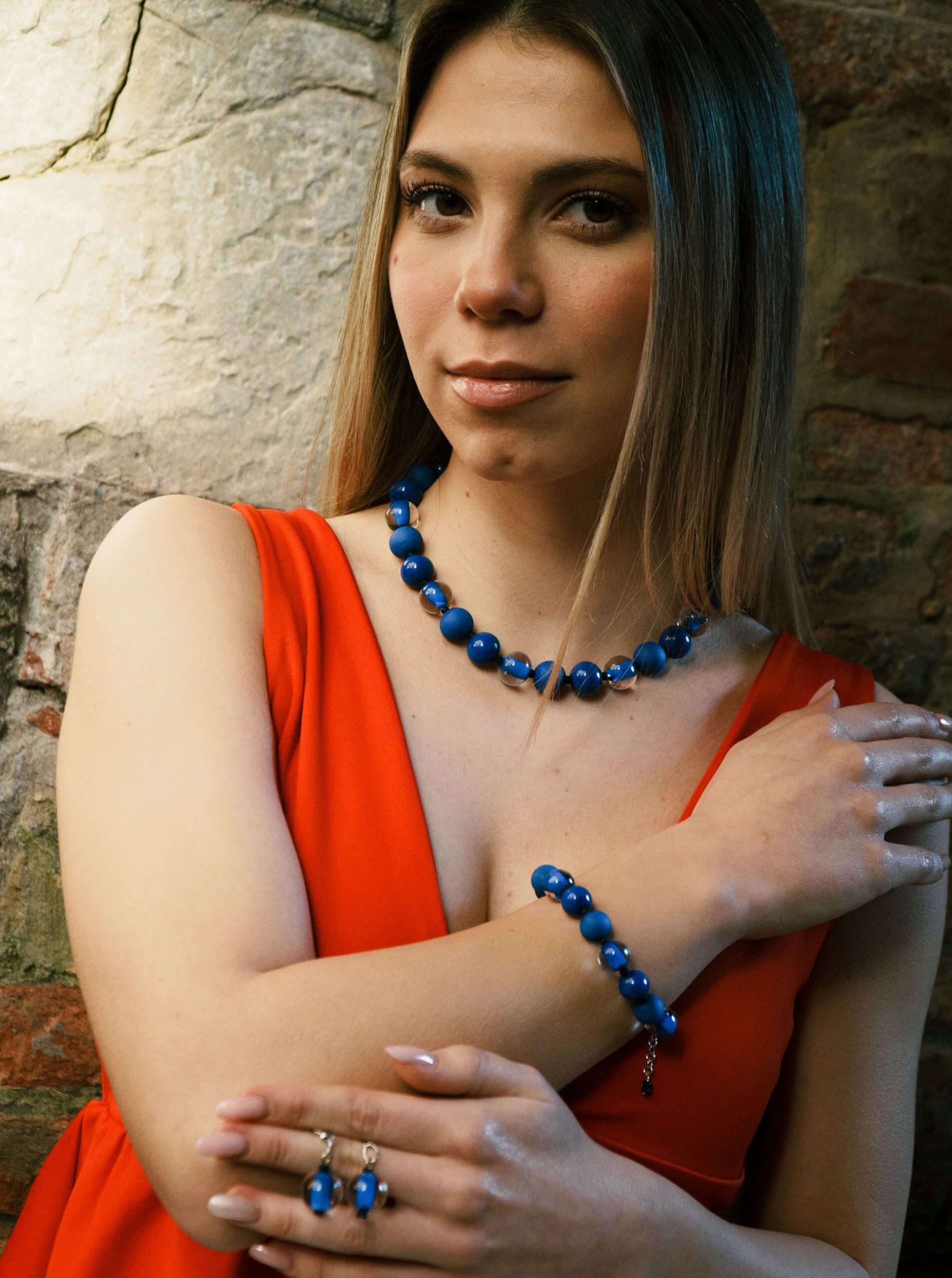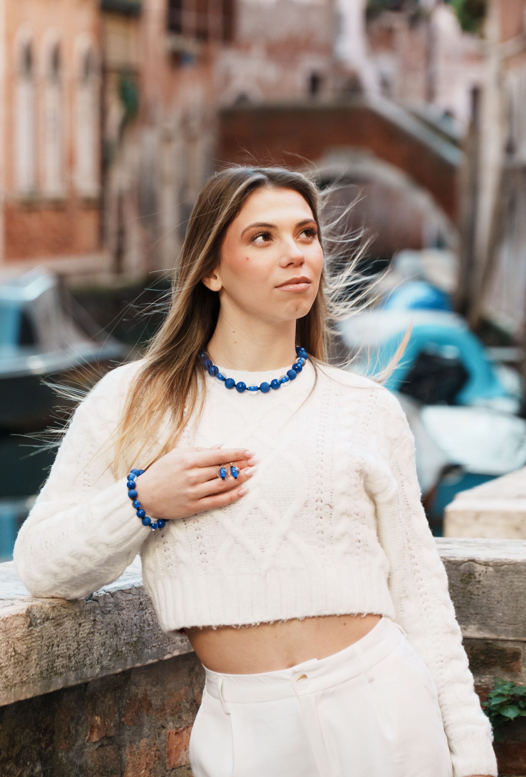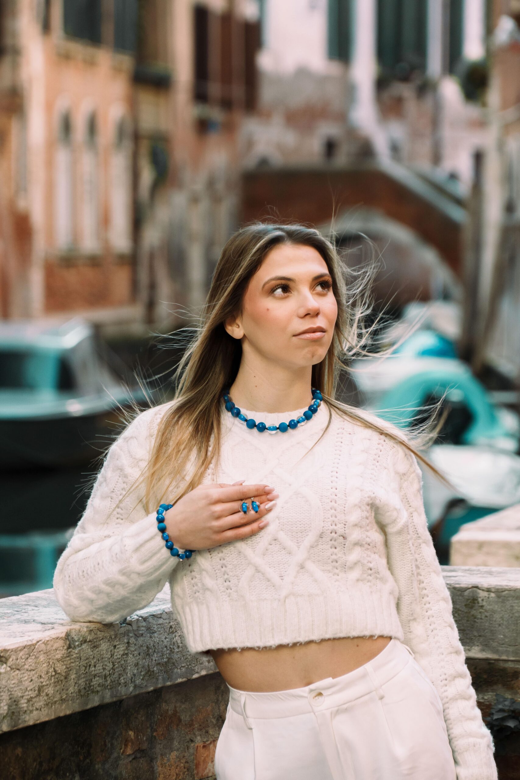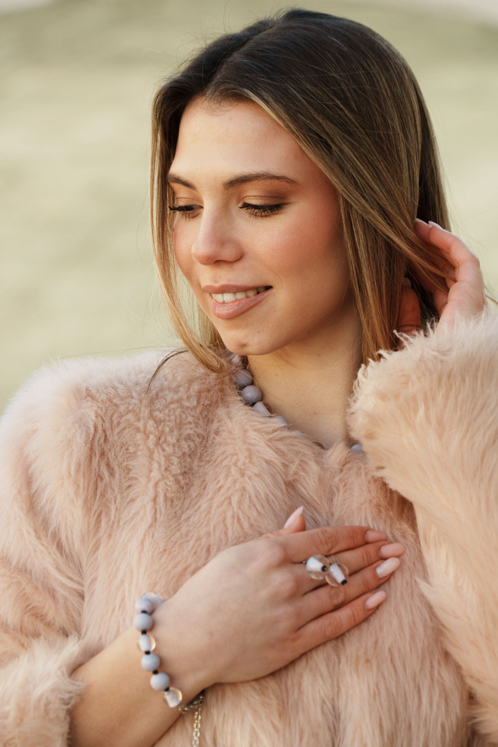 Necklace made with opaque and sandblasted round pearls interspersed with crystal pearls with an opaque core like pearls.