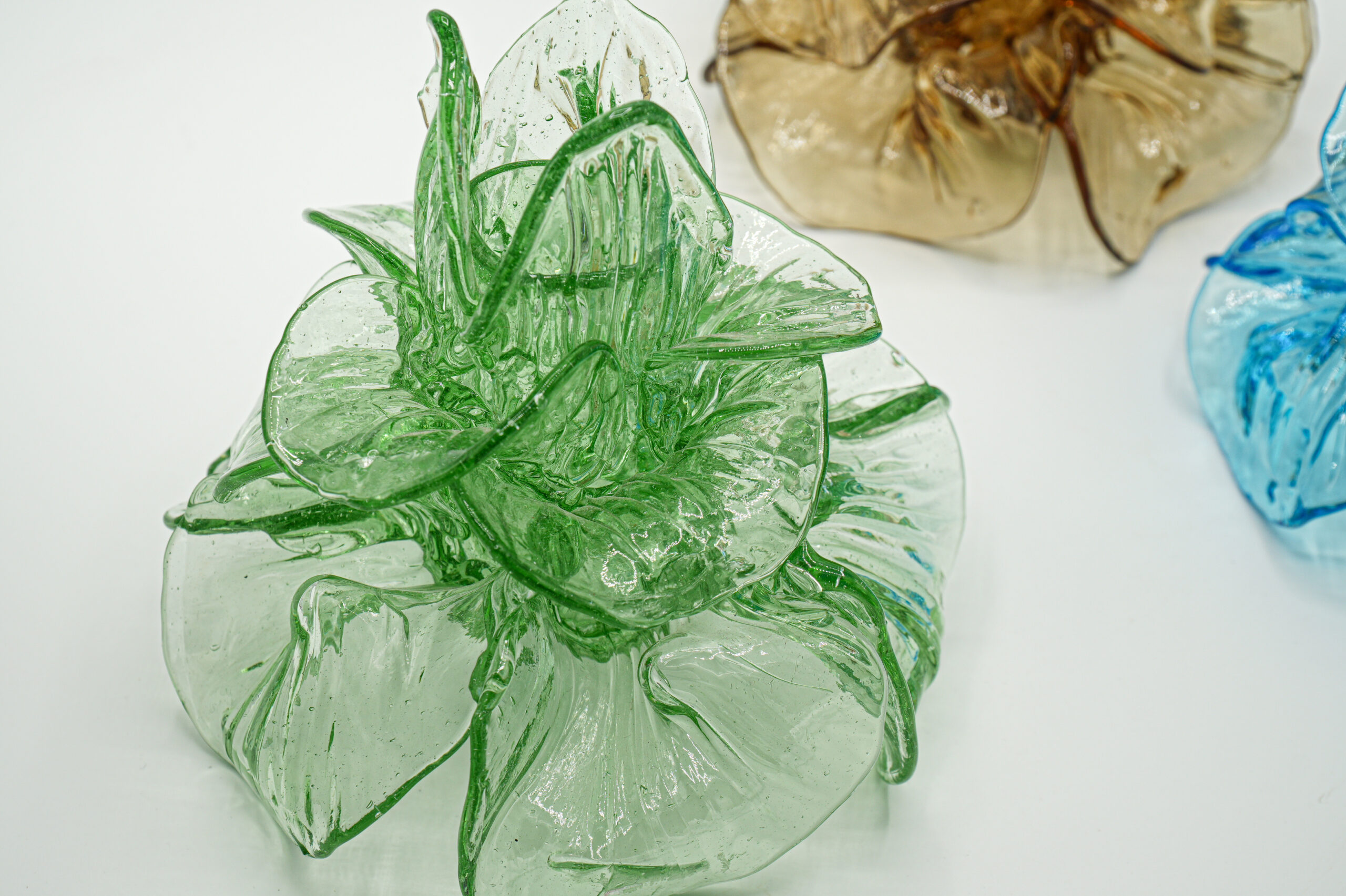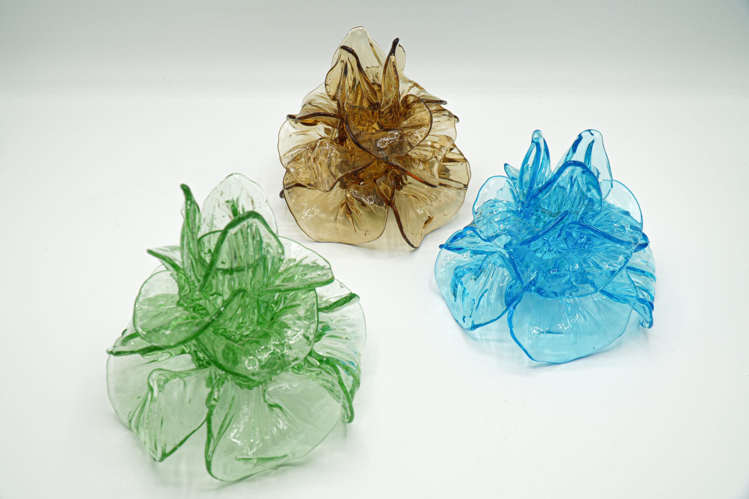 Rose-shaped candle holders with triple rows of petals, widely used as centrepieces