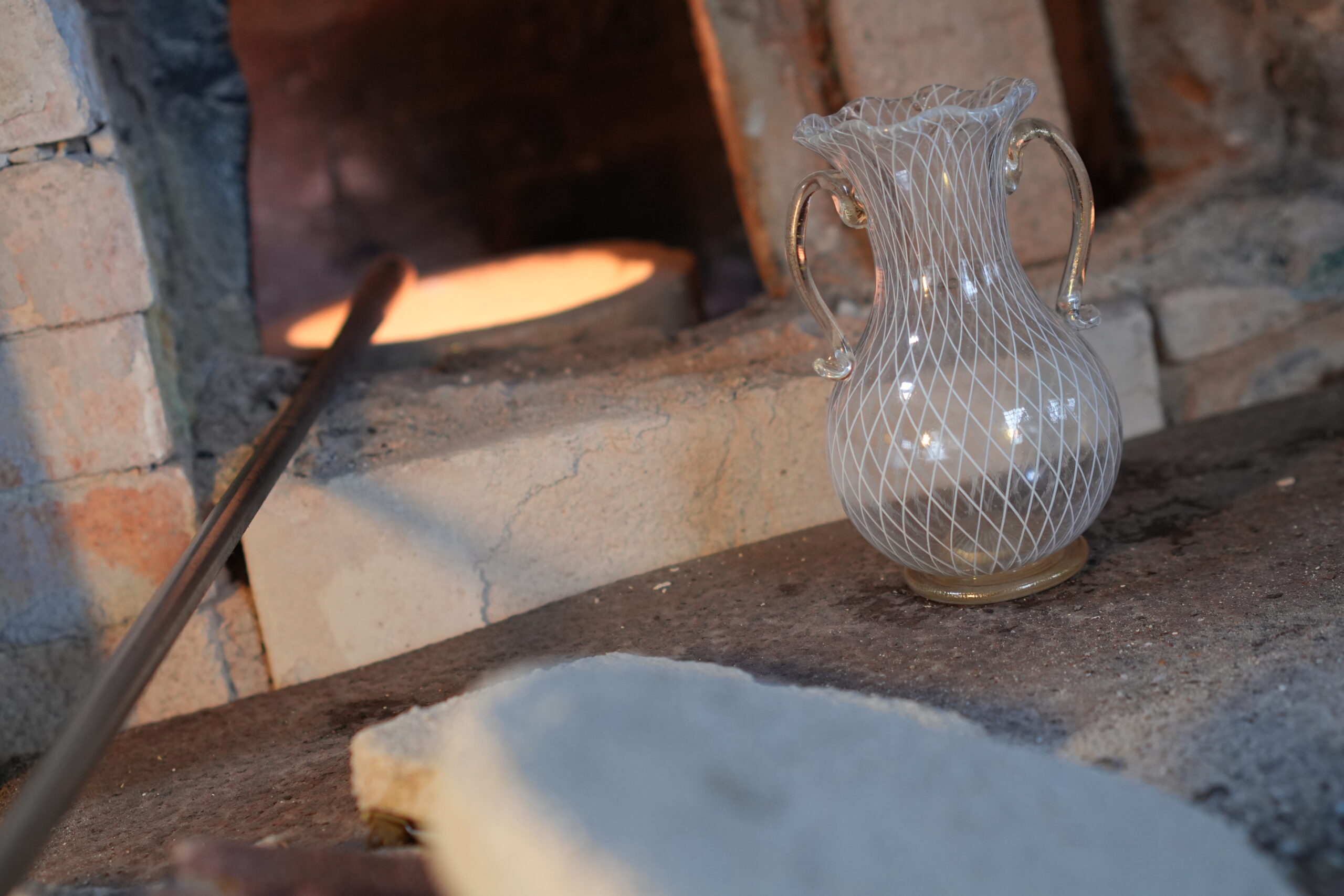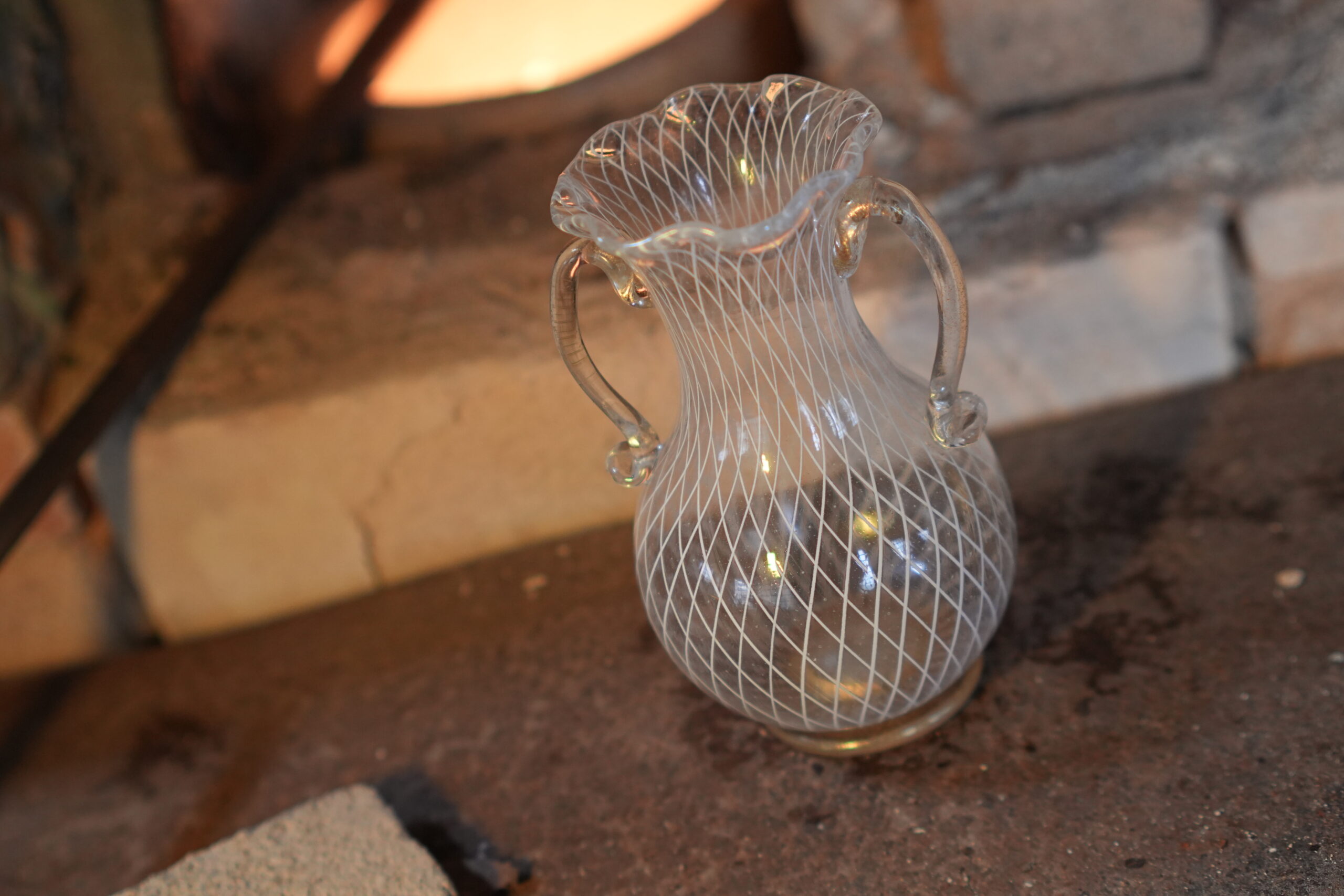 Two-handled amphora made with intertwined white canes.