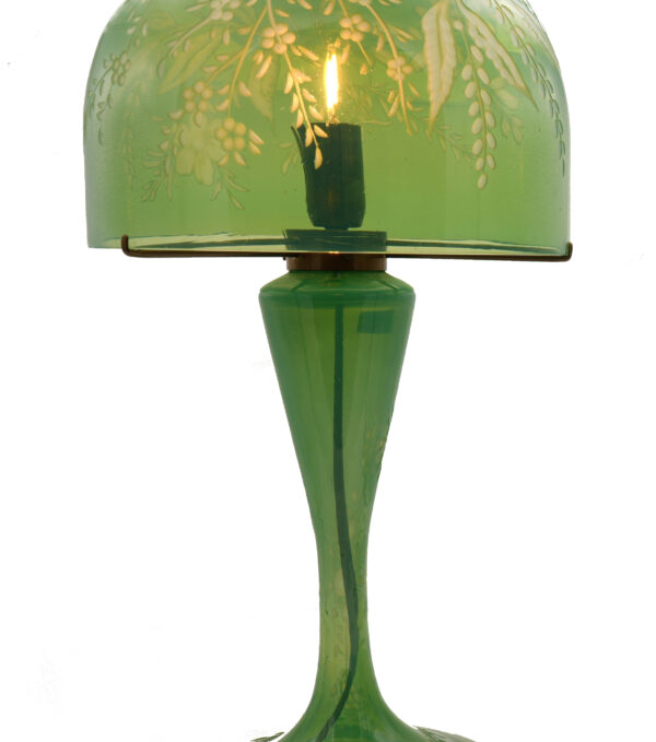 Green lamp, 1950s, with engraving on the entire body and base. Unique piece