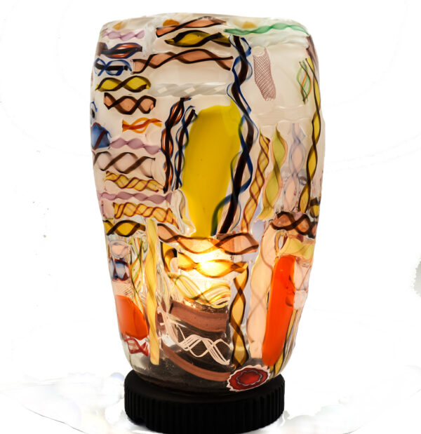 One of a kind lamp, composed of pieces of filigree, zanfirico, color, all hot inserted, unique and unrepeatable object