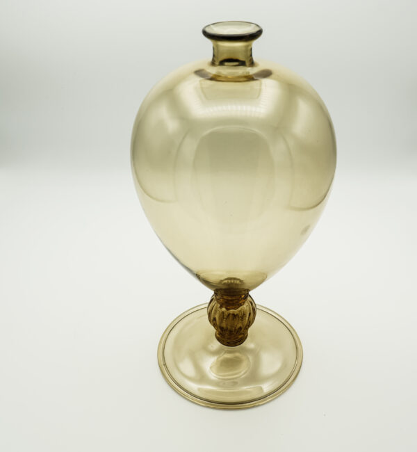 “Veronese” vase in smoky color with central ball printed in stripes with gold leaf.