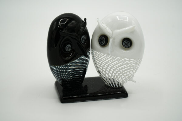 Small couple of Venetiane made with white filigree cane green color , and murrine . Collectible masterpieces.
