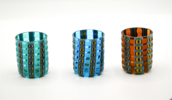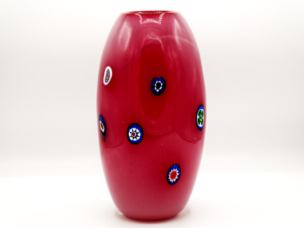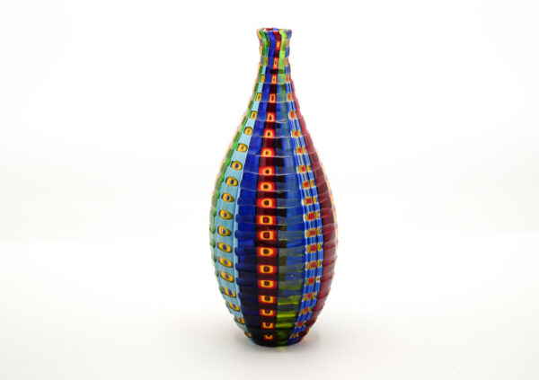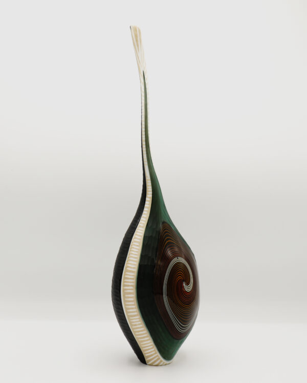 Collectible vase with central vortex workmanship, elongated and sinuous neck finished with the so-called “beaten” technique on the edges.