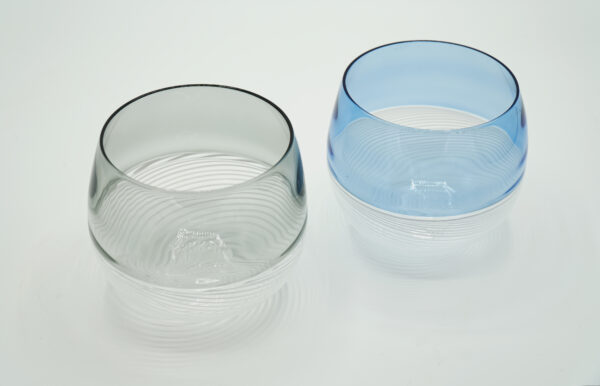 Glasses worked with the incalmo technique, half filigree and half colour