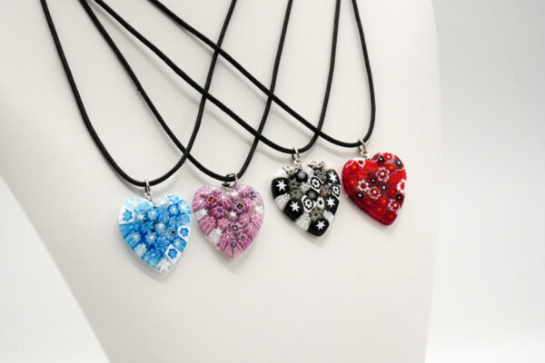 Necklace made with transparent and very bright colors, the central pearl is made with woven zanfirico canes and opaque blue threads.